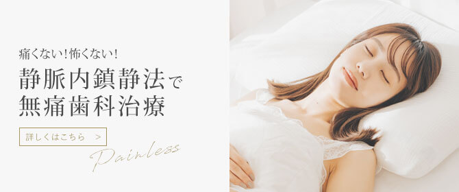 点滴を通して鎮静薬を投与し、うとうとした状態で治療を受ける方法です。全身麻酔とは違い、意識はありますが、恐怖心や痛みを感じることなく、まるで夢を見ているような状態で治療が完了します。
